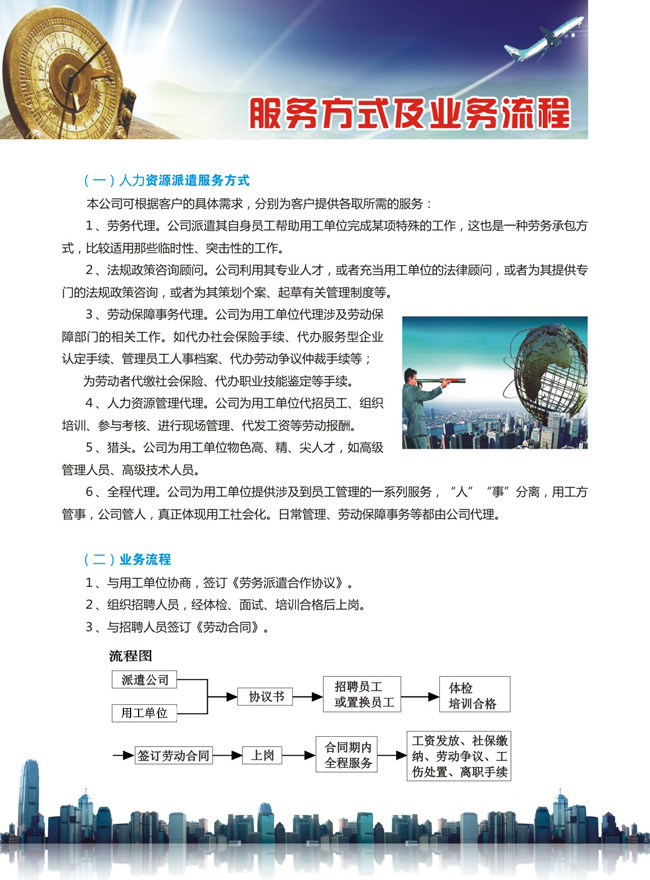 2、長(zhǎng)期人力資源派遣服務(wù)(二年以上,含二年),短期人力資源和臨時(shí)人力資源服務(wù)。